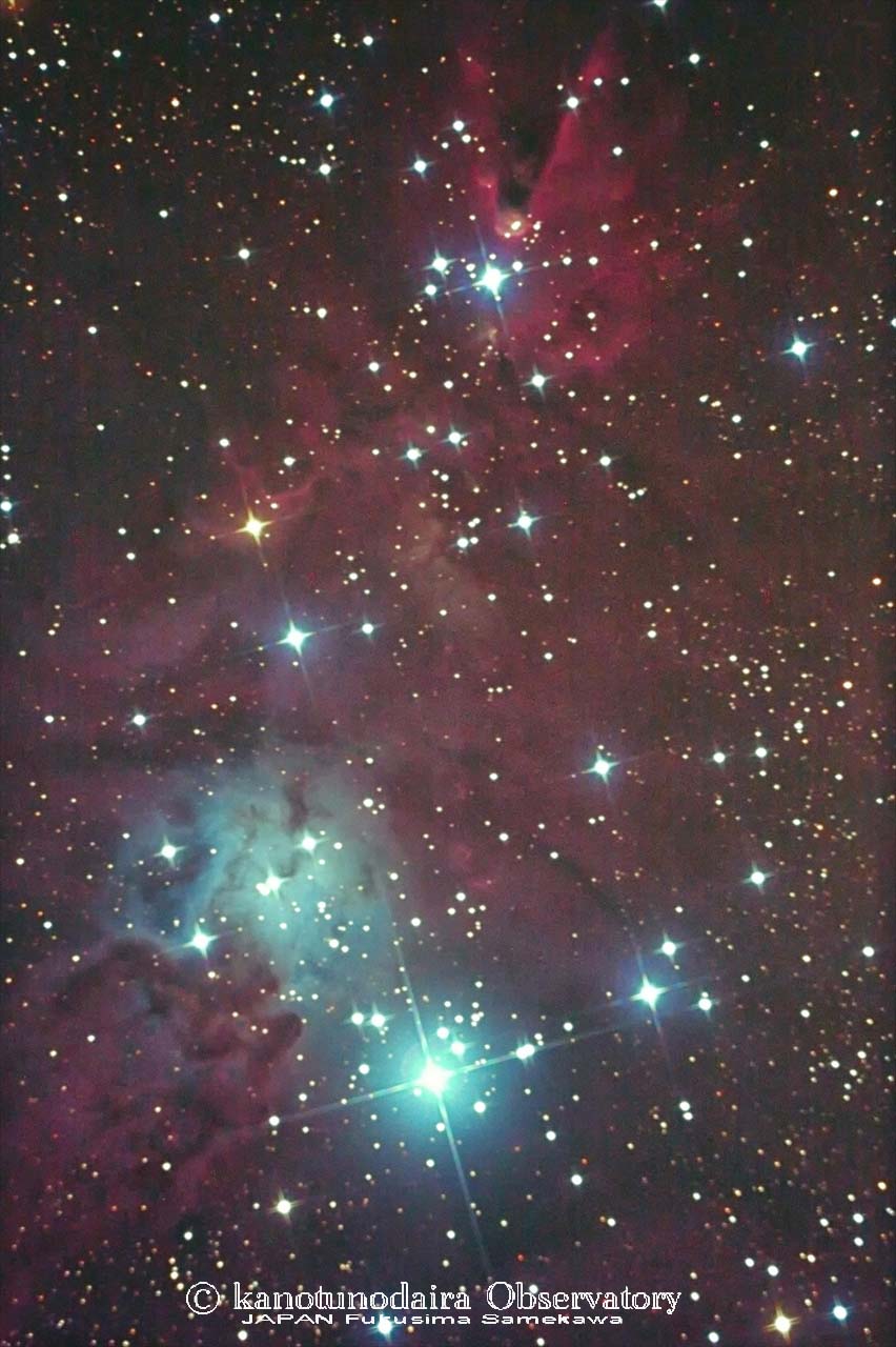 クリスマスツリー星団は主鏡低倍率で視野いっぱいのまばらな星。
