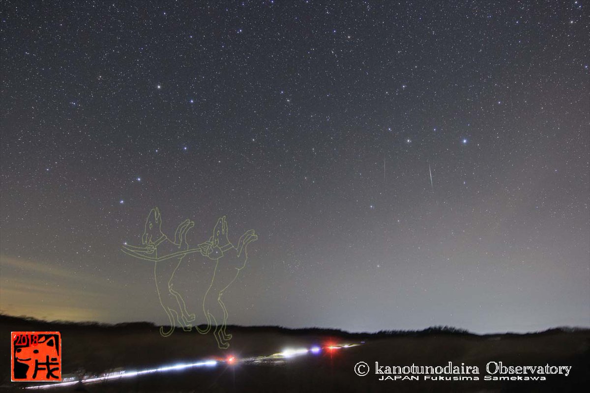 冬の大三角のシリウス(おおいぬ座)とプロキオン(こいぬ座)はすぐに見つかります。