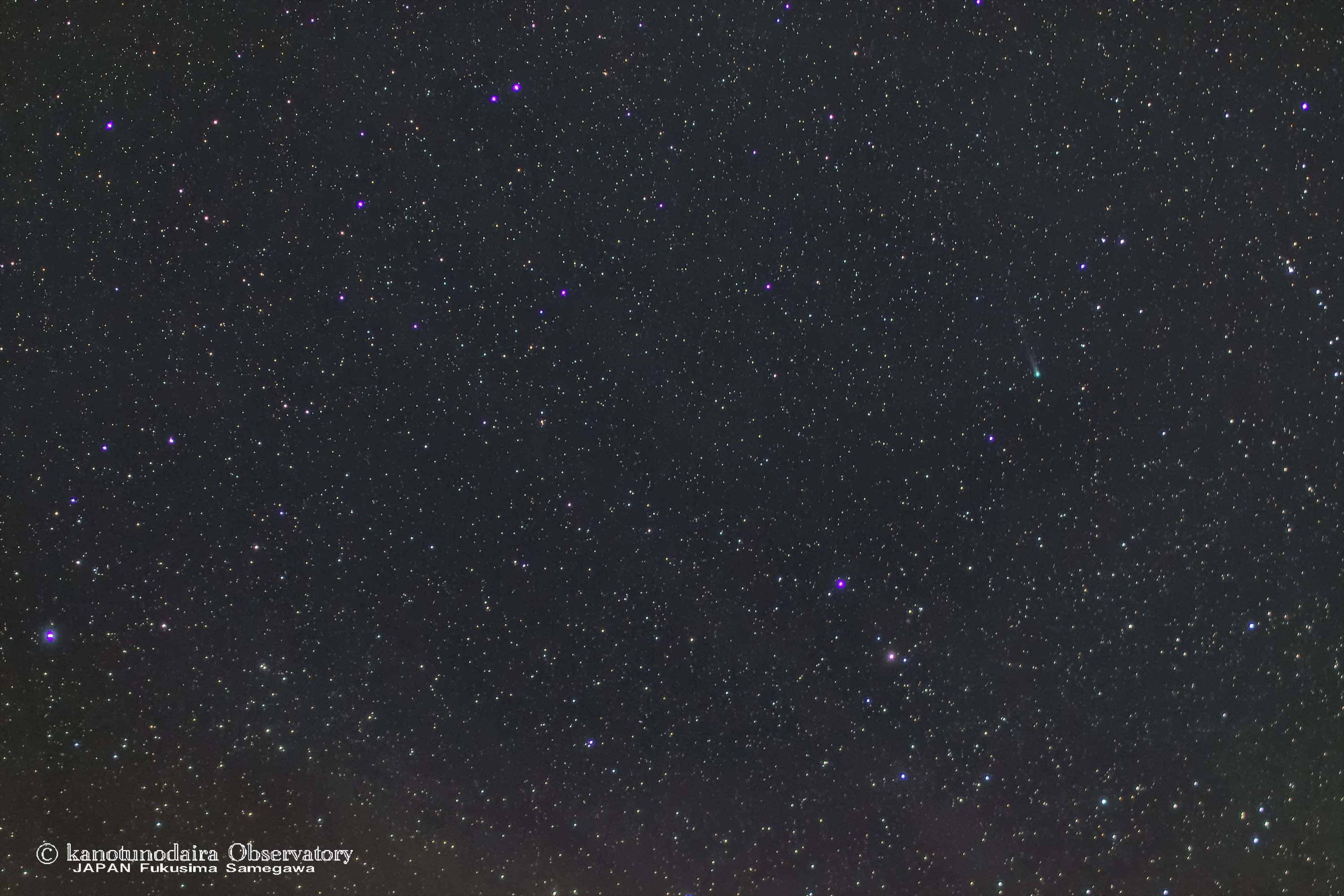 天気予報に反して曇り。諦めて麓に降りると雲間が切れてきた。薄明になってたのですぐ撮れる固定で数枚撮る。標準(APS-Cなので準望遠だけど)でも尾が写っていた。双眼鏡でもしっかり見えていた。